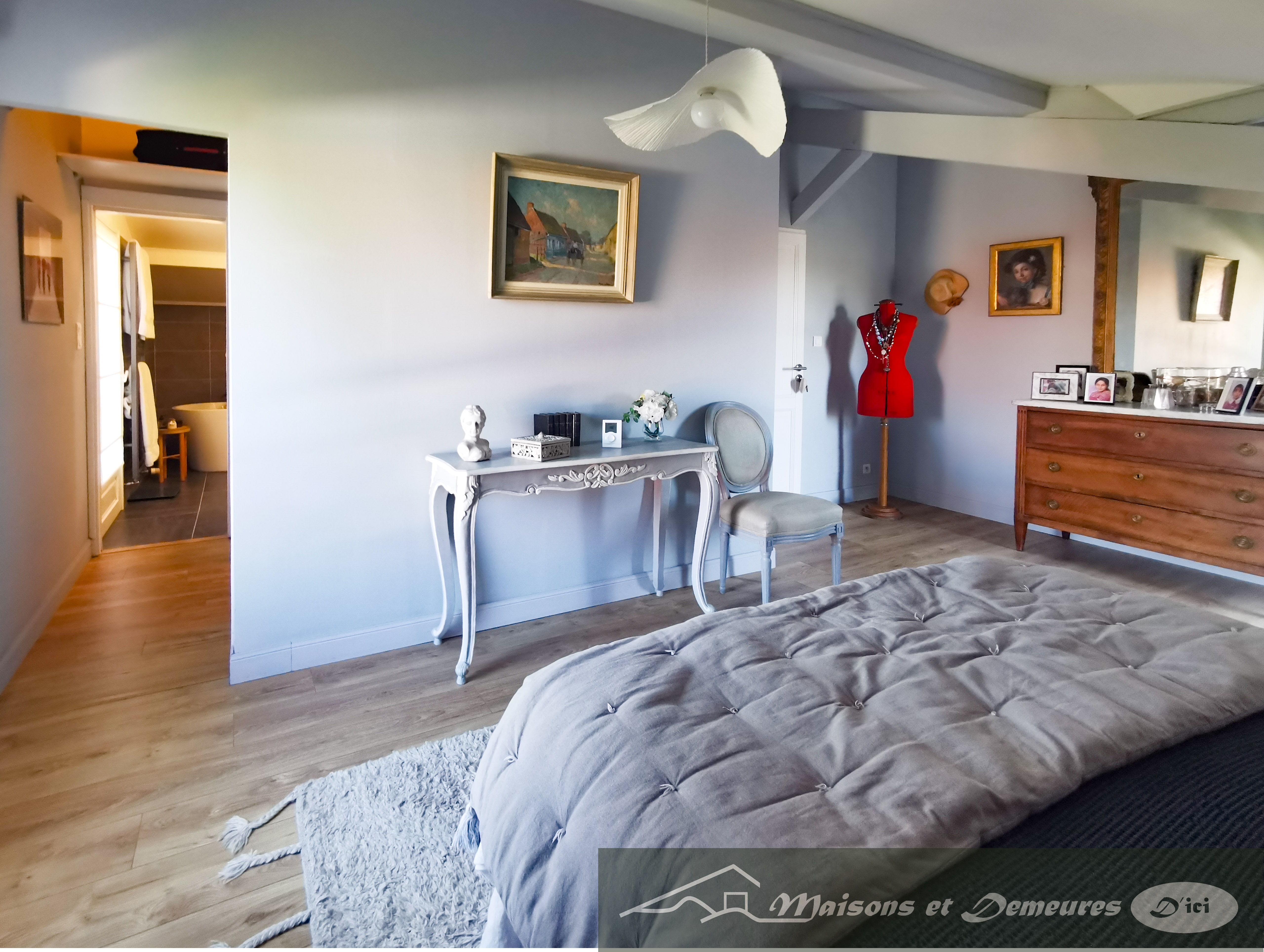 Notons également un dispositif de chauffage performant, au sol et alimenté par une pompe à chaleur récente et des panneaux solaires en auto consommation.