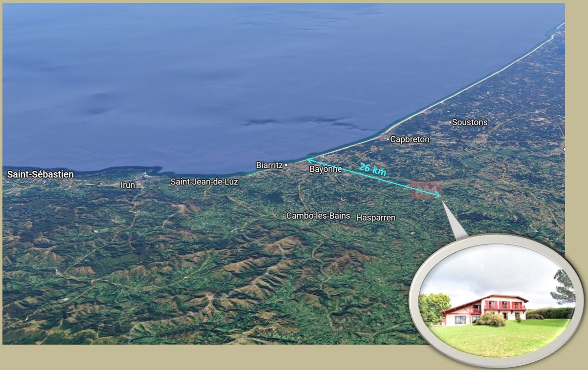 Un très bel endroit, au calme, intime mais pas trop isolé, aux abords immédiats d’un joli bourg bien achalandé, à 15 minutes de l’entrée de Bayonne et des villes côtières.