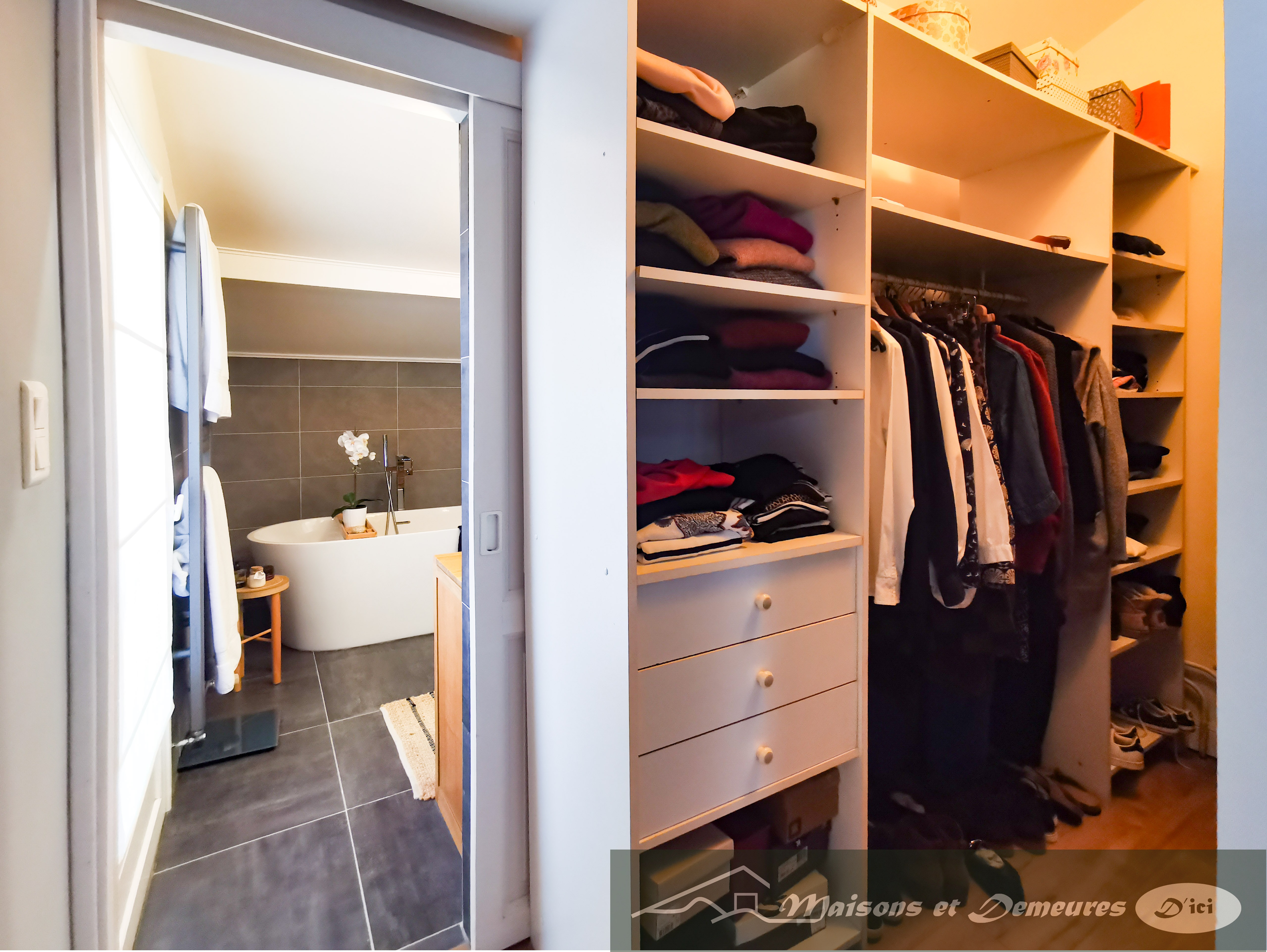 Notons également un dispositif de chauffage performant, au sol et alimenté par une pompe à chaleur récente et des panneaux solaires en auto consommation.
