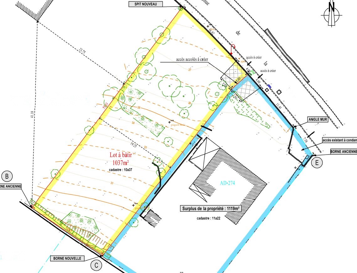 Terrain constructible de 1037 m² en secteur urbain. Emplacement très intéressant, présentant un versant Sud préservé des vis-à-vis et face à la nature, et adossé à une route pratique  pour accéder, à pied ou en voiture, en bus ou à vélo, à tous types de commerces, écoles et services. Idéal pour une habitation et/ou activité commerciale ou libérale.